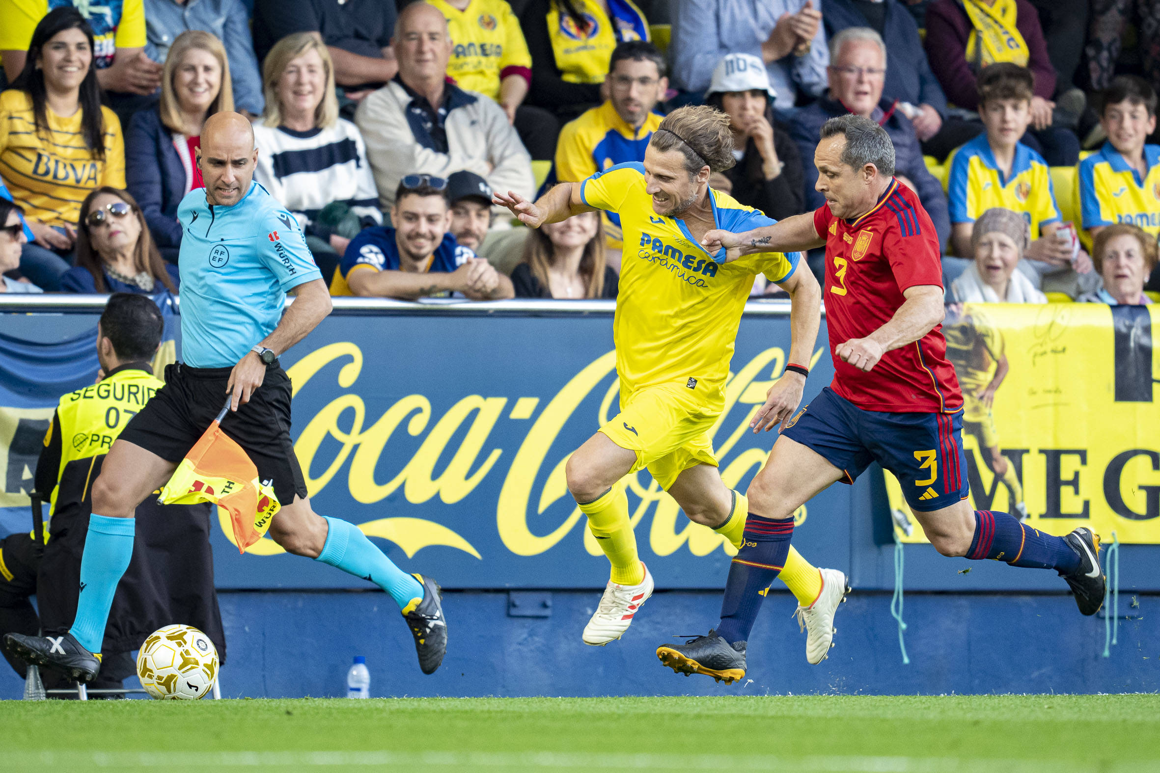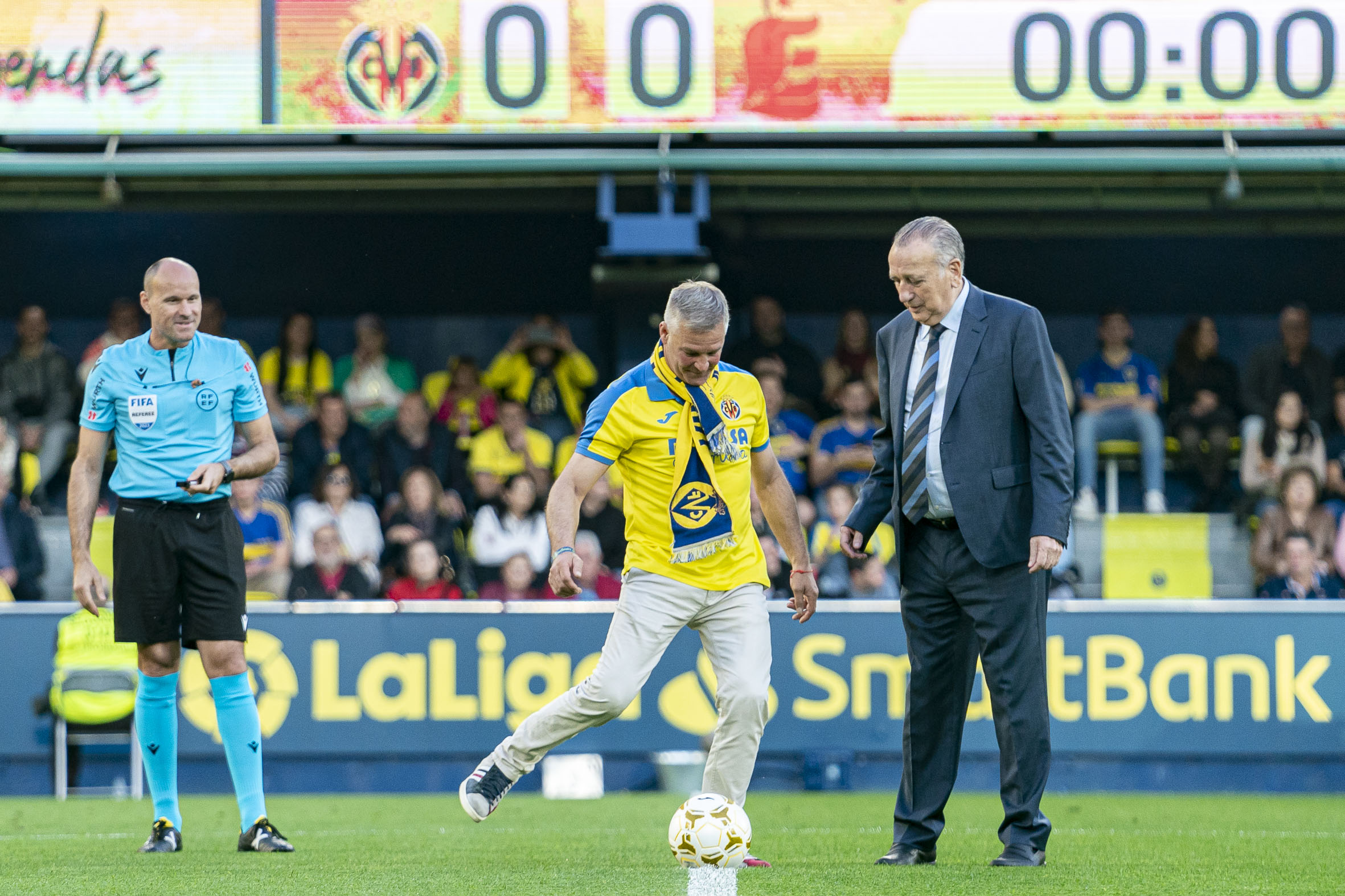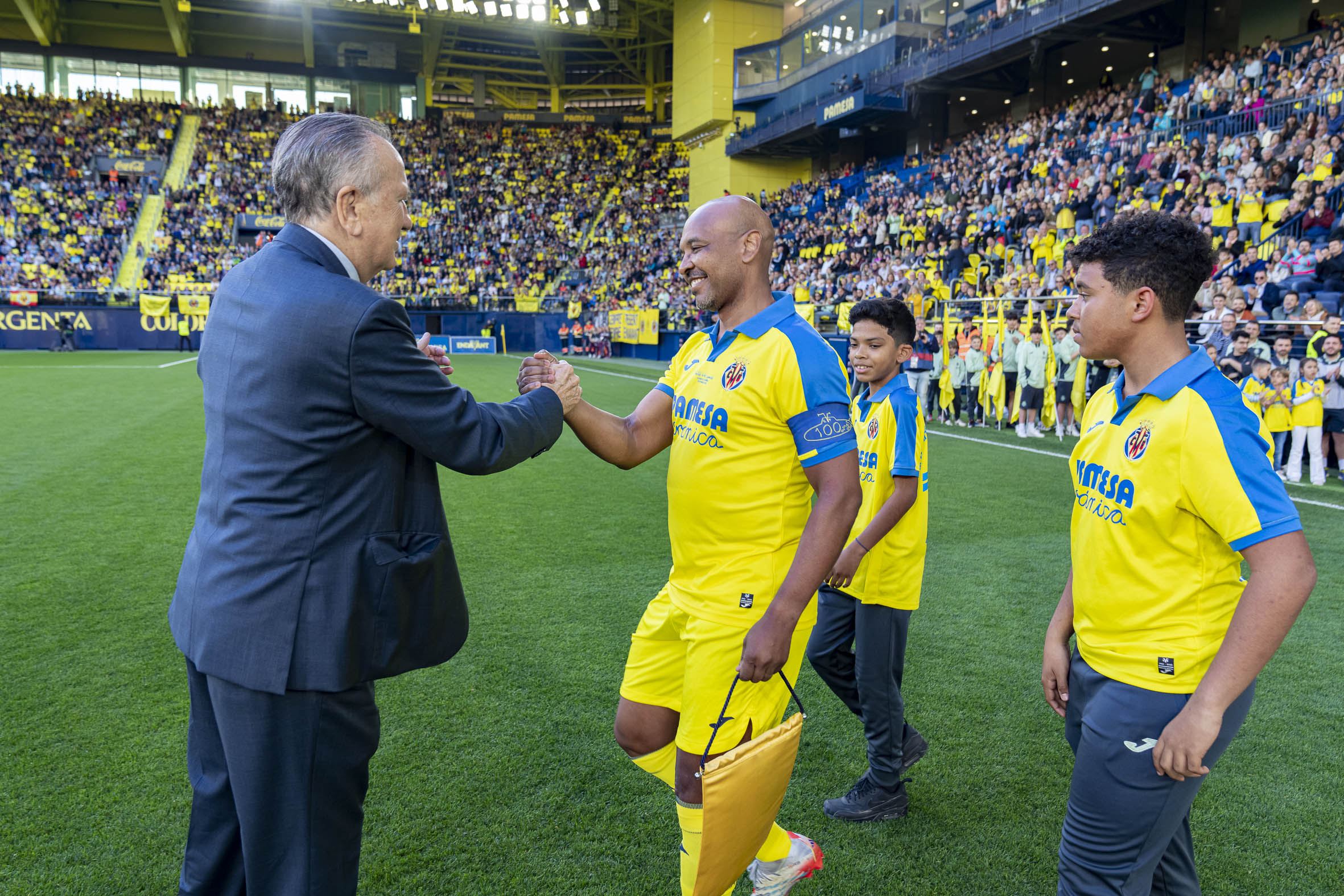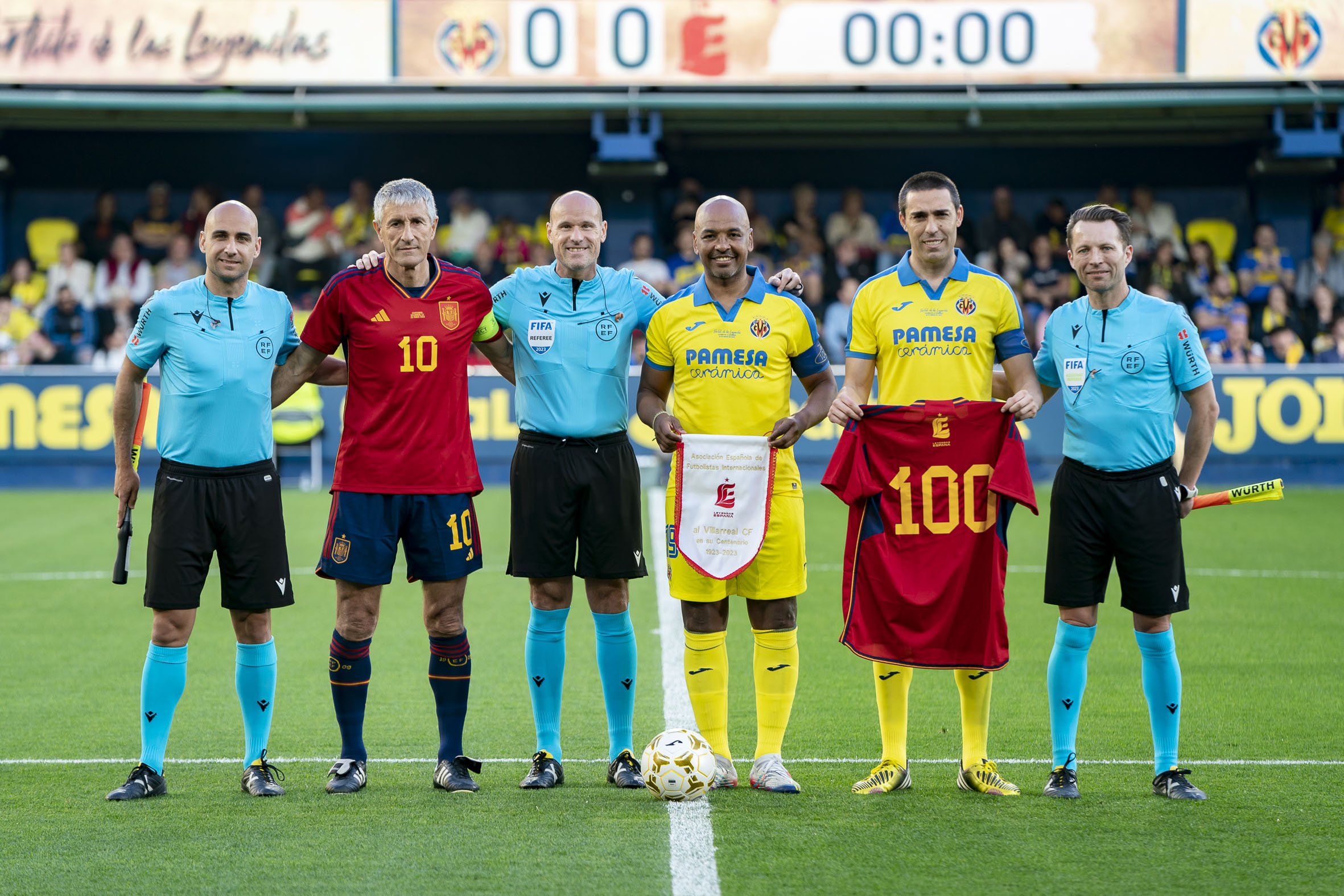 Villarreal’s top goalscorer at all levels, Adriano García, took part in the honorary kick-off of the match, which ended up as a 0-1 win for Spain. It was a realy party for the Villarreal family, who could enjoy some of the club’s best players of all time in action once more.